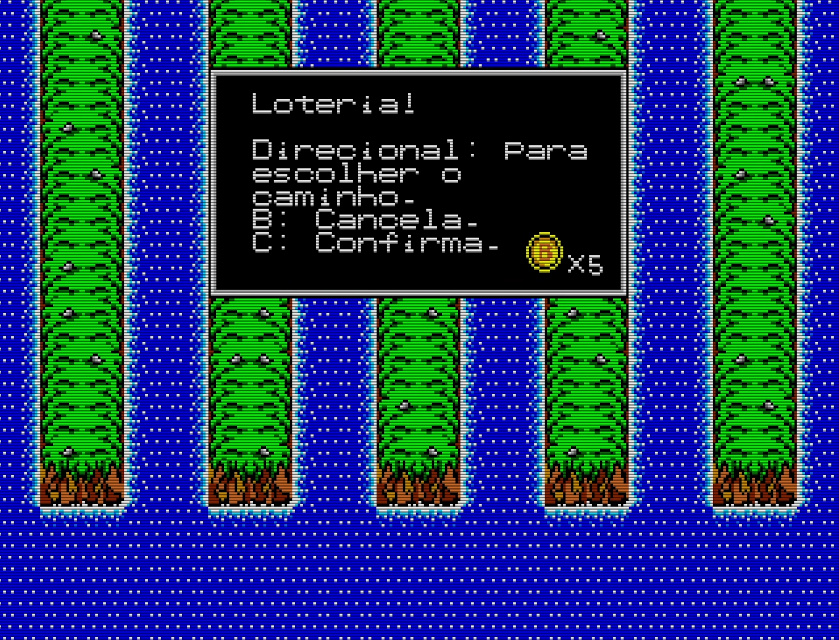 No entanto, não traduzi a tela do menu de opções. Embora tenha encontrado a fonte correta, não consegui localizar os textos desse menu na ROM. Como não queria gastar muito tempo com essa parte, optei por deixá-la para uma revisão futura. Ademais, pretendo redesenhar a tela de título no futuro.